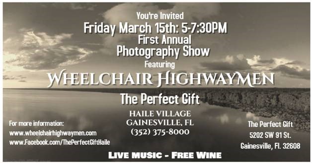 The Wheelchair Highwaymen will be making their debut in Gainesville at The Perfect Gift in Haile Village on March 15. The event will take place from 5-7:30 p.m.